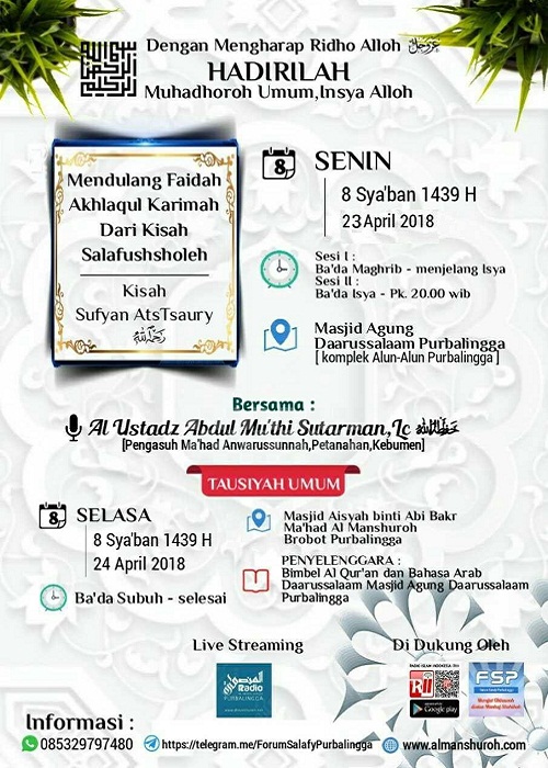 Rekaman Safari Dakwah Daurah Nasional “Asy-Syariah” ke-17 di Pekanbaru, Riau 1441H/2019M Asy-Syaikh Ali bin Hushain asy-Syarafi