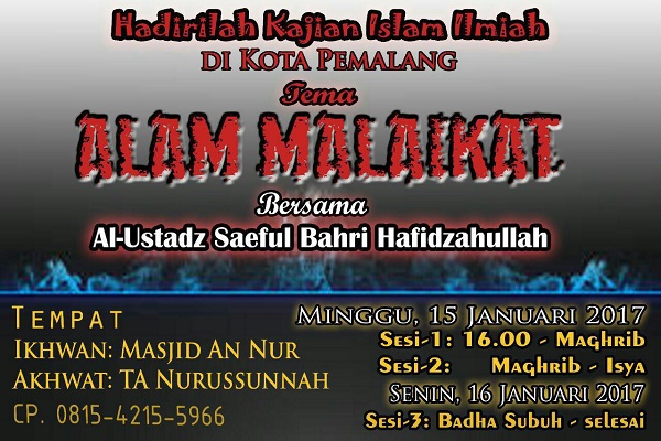 Al Ustadz Saiful Bahri Alam Malaikat 3 Tracks 0 Suka Laporkan S Al Ustadz Saiful Bahri 3 tracks Alam Malaikat - 1 Alam Malaikat - 2 Alam Malaikat - 3 Kajian lainnya oleh Al Ustadz Saiful Bahri Nasihat – Nasihat Salaf Indahnya Kehidupan Berumah Tangga Nilai Kesabaran Pada Masa Pandemi Generasi Muda-Mudi Di Tengah Arus Globalisasi