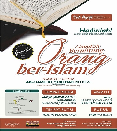 Al Ustadz Abu Nasim Mukhtar bin Rifai Alangkah Beruntung Orang Ber Islam 2 Tracks 0 Suka Laporkan A Al Ustadz Abu Nasim Mukhtar bin Rifai 2 tracks Alangkah Beruntung Orang Ber Islam - 1 Alangkah Beruntung Orang Ber Islam - 2 Kajian lainnya oleh Al Ustadz Abu Nasim Mukhtar bin Rifai Pentingnya Mendidik Anak Wanita Berteman itu, Jangan Begitu Tarbiyatul Aulad Ibarat Telaga Untuk Berlapang Dada