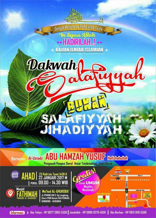 Al Ustadz Abu Hamzah Yusuf Dakwah Salafiyyah Bukan Dakwah Jihadiyyah 3 Tracks 0 Suka Laporkan A Al Ustadz Abu Hamzah Yusuf 3 tracks Dakwah Salafiyyah Bukan Dakwah Jihadiyyah - 1 Dakwah Salafiyyah Bukan Dakwah Jihadiyyah - 2 Dakwah Salafiyyah Bukan Dakwah Jihadiyyah - 3 Kajian lainnya oleh Al Ustadz Abu Hamzah Yusuf Tetaplah Menjadi Yang Terbaik Takdir-Mu Terbaik Bagiku Kenali Hakmu, Tunaikan Kewajibanmu Ketika Nikmat Jadi Musibah