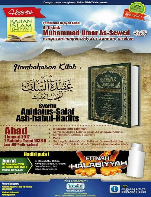 Al Ustadz Muhammad bin Umar as-Sewed Keyakinan Pada Sifat-sifat Allah 3 Tracks 0 Suka Laporkan M Al Ustadz Muhammad bin Umar as-Sewed 3 tracks Keyakinan Pada Sifat-sifat Allah - 1 Keyakinan Pada Sifat-sifat Allah - 2 Keyakinan Pada Sifat-sifat Allah - 3 Kajian lainnya oleh Al Ustadz Muhammad bin Umar as-Sewed Penyakit Hati Yang Menghalangi Ilmu Iman Bisa Berambah dan Bisa Berkurang Akibat Jelek Kemaksiatan Bahaya Pengadu Domba