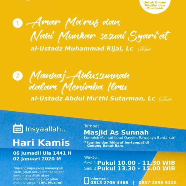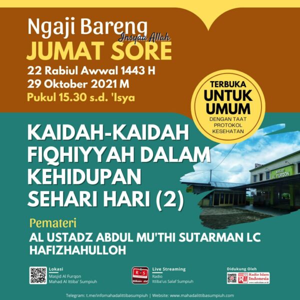 Al Ustadz Abdul Mu'thi Sutarman Mendulang Faidah dari Kisah Aisyah Binti Abi Bakr Radhiyallahu Anhuma 2 Tracks 0 Suka Laporkan A Al Ustadz Abdul Mu'thi Sutarman 2 tracks Mendulang Faidah dari Kisah Aisyah Binti Abi Bakr Radhiyallahu Anhuma - 1 Mendulang Faidah dari Kisah Aisyah Binti Abi Bakr Radhiyallahu Anhuma - 2 Kajian lainnya oleh Al Ustadz Abdul Mu'thi Sutarman Kaidah Fiqhiyah dalam Kehidupan Sehari-Hari 2 Kaidah Fiqhiyah dalam Kehidupan Sehari-Hari Amar Ma’ruf dan Nahi Munkar Sesuai Syari’at Mendulang Hikmah dari Kisah 7 Shahabat Terkemuka Pembawa Sunnah
