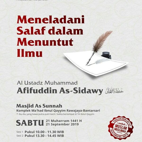 Al Ustadz Muhammad Afifuddin as-Sidawy Meneladani Salaf dalam Menuntut Ilmu 3 Tracks 0 Suka Laporkan M Al Ustadz Muhammad Afifuddin as-Sidawy 3 tracks Meneladani Salaf dalam Menuntut Ilmu - 1 Meneladani Salaf dalam Menuntut Ilmu - 2 Meneladani Salaf dalam Menuntut Ilmu - 3 Kajian lainnya oleh Al Ustadz Muhammad Afifuddin as-Sidawy Perjuangan Dakwah Rambu-rambu Syariah di Masa Fitnah Pertemuan ke-2 Nasehat adalah Tanda Cinta Taqwa Solusi Jalan Keluar dari Berbagai Fitnah