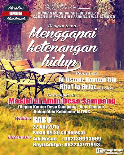 Al Ustadz Hamzah bin Rifa'i la Firlaz Menggapai Ketenangan Hidup 3 Tracks 0 Suka Laporkan H Al Ustadz Hamzah bin Rifa'i la Firlaz 3 tracks Menggapai Ketenangan Hidup - 1 Menggapai Ketenangan Hidup - 2 Menggapai Ketenangan Hidup - 3 Kajian lainnya oleh Al Ustadz Hamzah bin Rifa'i la Firlaz Dakwah Ahlus Sunnah Dakwah Yang Bijak Niat Ikhlas Duri-duri Perusak Roda Kehidupan Kemana Arah Tujuan Hidupmu