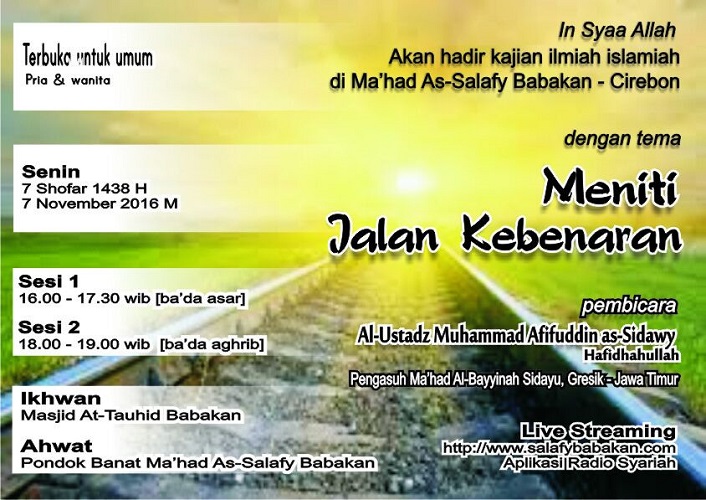 Al Ustadz Muhammad Afifuddin as-Sidawy Meniti Jalan Kebenaran 2 Tracks 0 Suka Laporkan M Al Ustadz Muhammad Afifuddin as-Sidawy 2 tracks Meniti Jalan Kebenaran - 1 Meniti Jalan Kebenaran - 2 Kajian lainnya oleh Al Ustadz Muhammad Afifuddin as-Sidawy Perjuangan Dakwah Rambu-rambu Syariah di Masa Fitnah Pertemuan ke-2 Nasehat adalah Tanda Cinta Taqwa Solusi Jalan Keluar dari Berbagai Fitnah