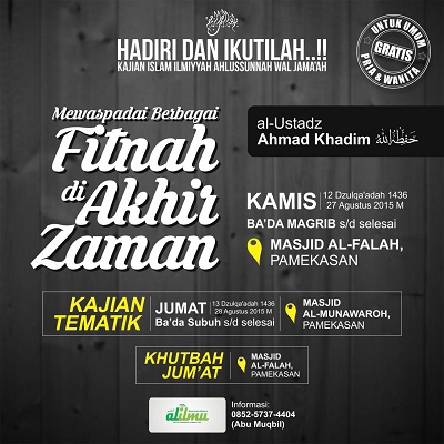 Kajian lainnya oleh Al Ustadz Ahmad Khadim