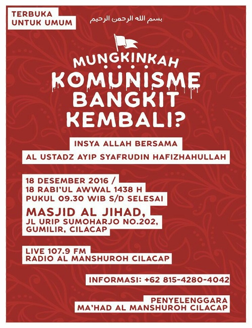 Al Ustadz Abul Faruq Ayip Syafruddin Mungkinkah Komunisme Bangkit Kembali? 2 Tracks 0 Suka Laporkan A Al Ustadz Abul Faruq Ayip Syafruddin 2 tracks Mungkinkah Komunisme Bangkit Kembali? - 1 Mungkinkah Komunisme Bangkit Kembali? - 2 Kajian lainnya oleh Al Ustadz Abul Faruq Ayip Syafruddin Belajar Ilmu Agama tidak Berbatas Usia Dakwah Butuh Perjuangan Saat Cinta Menepi Di Hati Belajar Ilmu Agama Tak Berbatas Usia
