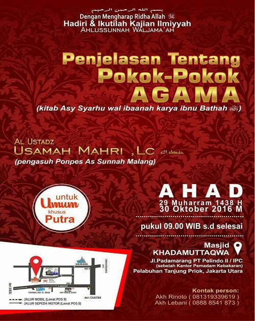 Al Ustadz Usamah bin Faishal Mahri Penjelasan Tentang Pokok-pokok Agama 2 Tracks 0 Suka Laporkan U Al Ustadz Usamah bin Faishal Mahri 2 tracks Penjelasan Tentang Pokok-pokok Agama - 1 Penjelasan Tentang Pokok-pokok Agama - 2 Kajian lainnya oleh Al Ustadz Usamah bin Faishal Mahri Mensyukuri Nikmat Allah Dibalik Musibah Dauroh Online Asatidzah AnnajiyahDesign Hati Yang Selamat Syarah Qasidah Haaiyyah