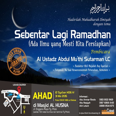 Al Ustadz Abdul Mu'thi Sutarman Sebentar Lagi Ramadhan (Ada Ilmu Yang Mesti Kita Persiapkan) 2 Tracks 0 Suka Laporkan A Al Ustadz Abdul Mu'thi Sutarman 2 tracks Sebentar Lagi Ramadhan (Ada Ilmu Yang Mesti Kita Persiapkan) - 1 Sebentar Lagi Ramadhan (Ada Ilmu Yang Mesti Kita Persiapkan) - 2 Kajian lainnya oleh Al Ustadz Abdul Mu'thi Sutarman Kaidah Fiqhiyah dalam Kehidupan Sehari-Hari 2 Kaidah Fiqhiyah dalam Kehidupan Sehari-Hari Amar Ma’ruf dan Nahi Munkar Sesuai Syari’at Mendulang Hikmah dari Kisah 7 Shahabat Terkemuka Pembawa Sunnah