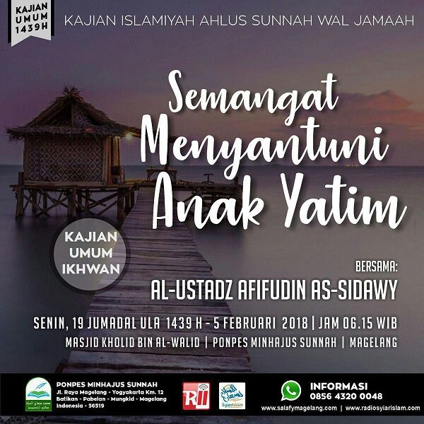 Al Ustadz Muhammad Afifuddin as-Sidawy Semangat Menyantuni Anak Yatim 1 Track 0 Suka Laporkan M Al Ustadz Muhammad Afifuddin as-Sidawy 1 track Semangat Menyantuni Anak Yatim - 1 Kajian lainnya oleh Al Ustadz Muhammad Afifuddin as-Sidawy Perjuangan Dakwah Rambu-rambu Syariah di Masa Fitnah Pertemuan ke-2 Nasehat adalah Tanda Cinta Taqwa Solusi Jalan Keluar dari Berbagai Fitnah
