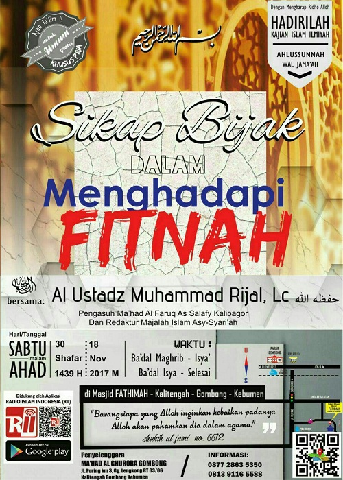 Al Ustadz Muhammad Rijal Sikap Bijak Dalam Menghadapi Fitnah 2 Tracks 0 Suka Laporkan M Al Ustadz Muhammad Rijal 2 tracks Sikap Bijak Dalam Menghadapi Fitnah - 1 Sikap Bijak Dalam Menghadapi Fitnah - 2 Kajian lainnya oleh Al Ustadz Muhammad Rijal Penghalang Dalam Meraih Ilmu Keutamaan Tauhid Uluhiyyah Mengenal Musnad Imam Ahmad Pertemuan 2 Mengenal Musnad Imam Ahmad